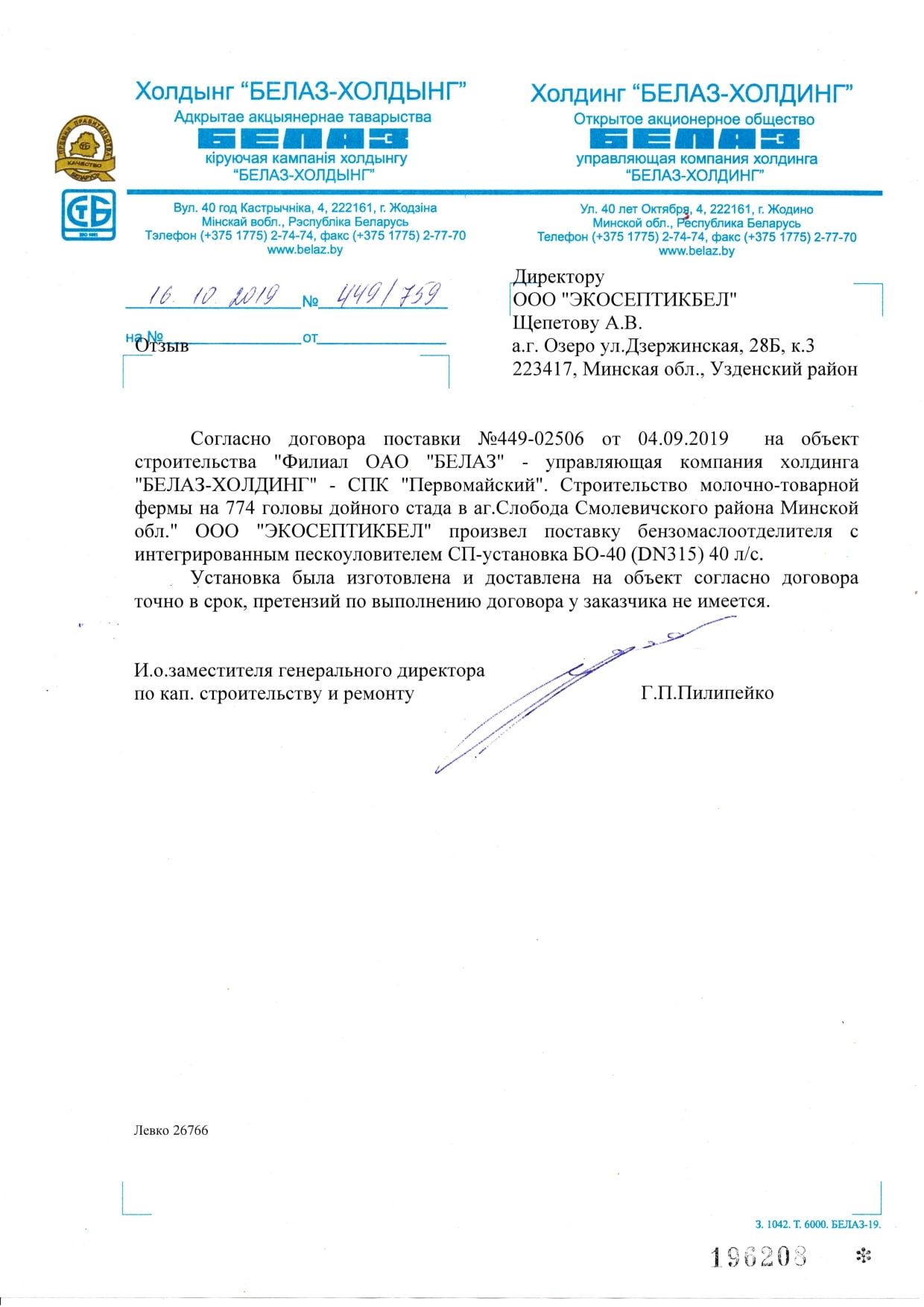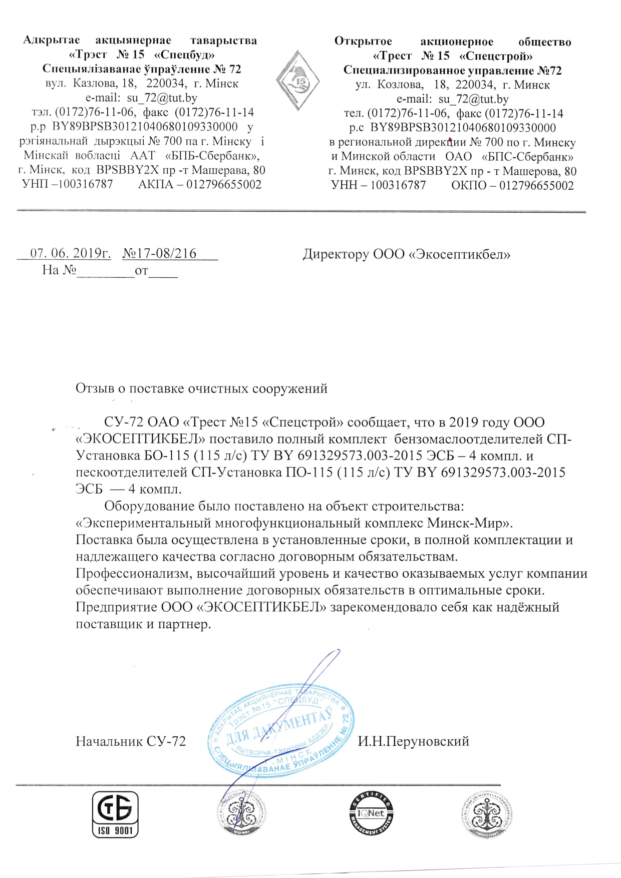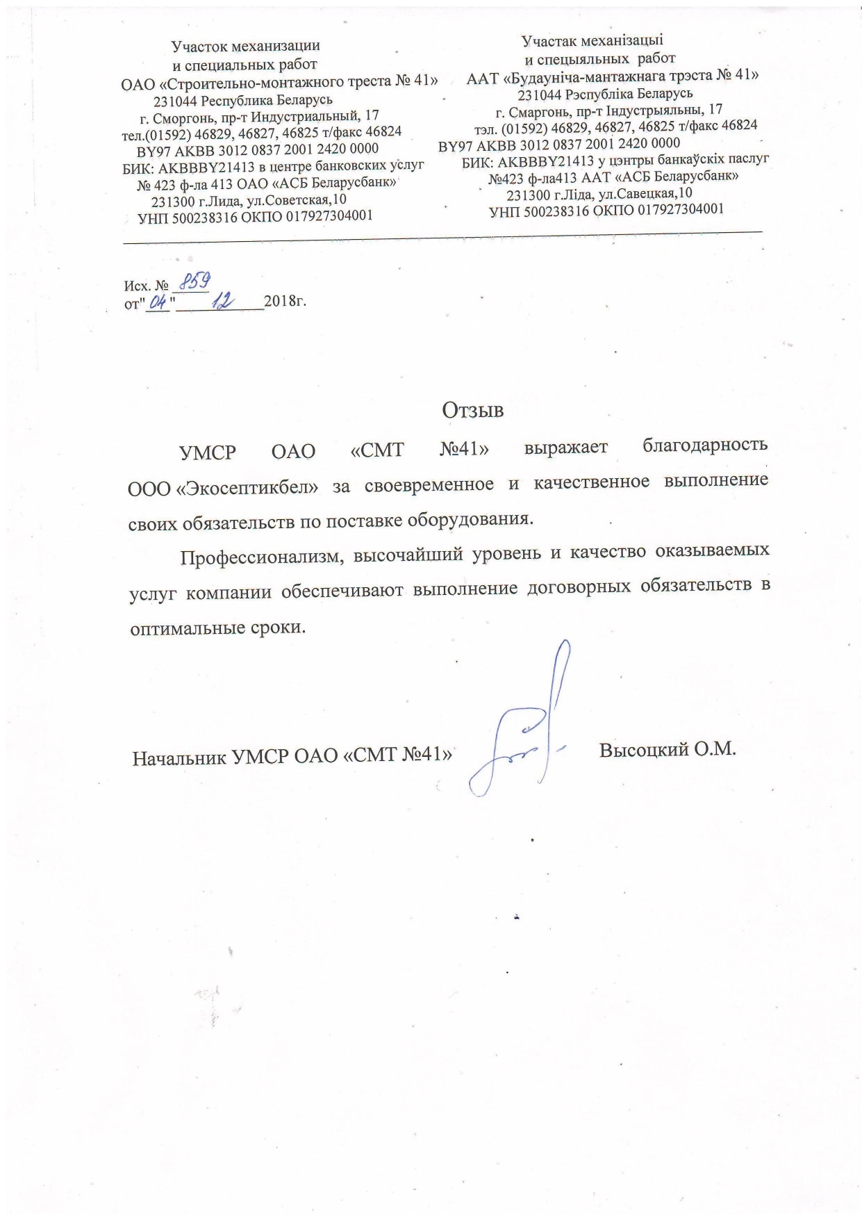 Система очистных сооружений состоит из продукции, выпущенной по запатентованной технологии с учетом комплекса разноплановых факторов. Постоянно совершенствуем производство. Используем новое современное оборудование. Вся продукция изготовлена из армированного стеклопластика. С 2017 года с целью усиления во все установки добавляем вкрапленные ребра жесткости. Особой популярностью пользуются станции биологической очистки, жироуловители, очистные системы канализаций и прочие установки. Произведенная нами продукция успешно доказала свою эффективность и надежность. Используемые методы очистки сертифицированы, соответствуют белорусским и международным стандартам.